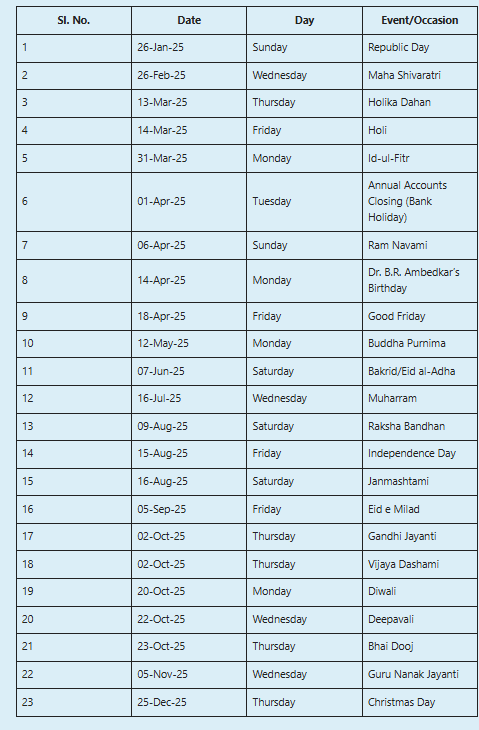Bank Holiday Please refer below for the List of Holidays for the Year 2025 Holiday for Uttrakhand :- Click Here